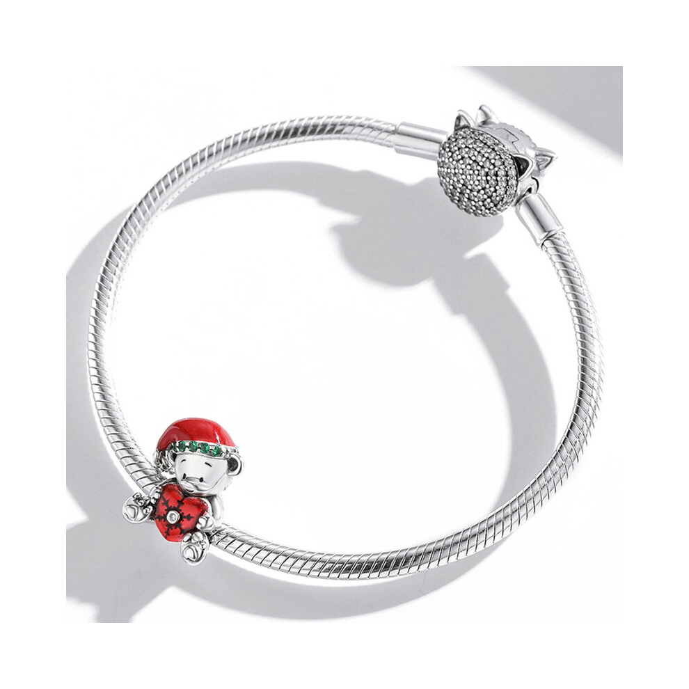Cute Christmas Teddy Bear With Gift Charm Bead With Cubic Zirconia Genuine 925 Sterling Silver Compatible With Pandora Bracelets Description